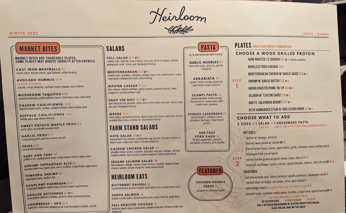 Nestled in Fresno, Heirloom serves up a vibrant fusion of flavors that caters to various palates. One of the standout offerings is the Keto Salad, featuring wood-grilled tri-tip, avocado, and a tangy red wine vinaigrette, perfect for health-conscious diners. For seafood aficionados, the Sesame Salmon Salad combines fresh kale and crunchy tempura shrimp croutons, all drizzled with a honey cashew sauce.